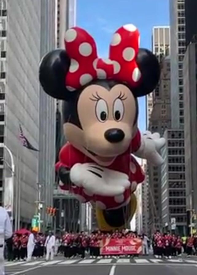 A video shows the Minnie Mouse balloon at the Macy's Thanksgiving Day Parade in New York City