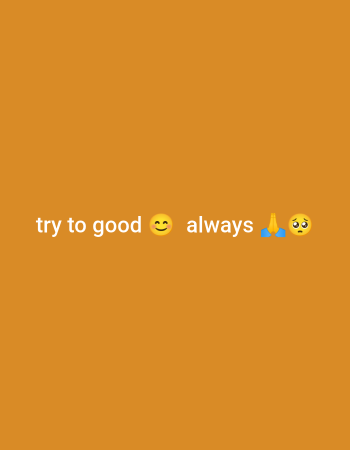 This image is situated in Okeni, Nigeria. The scene presents a uniform orange background, devoid of any discernible features or textures. Horizontally centered in the lower-middle section are white text and three emojis. The text reads "try to good", followed by a smiling face emoji (😊). This is succeeded by the word "always", which is then followed by a praying hands emoji (🙏) and a pleading face emoji (🥺). No individuals, actions, interactions, or additional environmental details are visually represented within this static graphical composition.