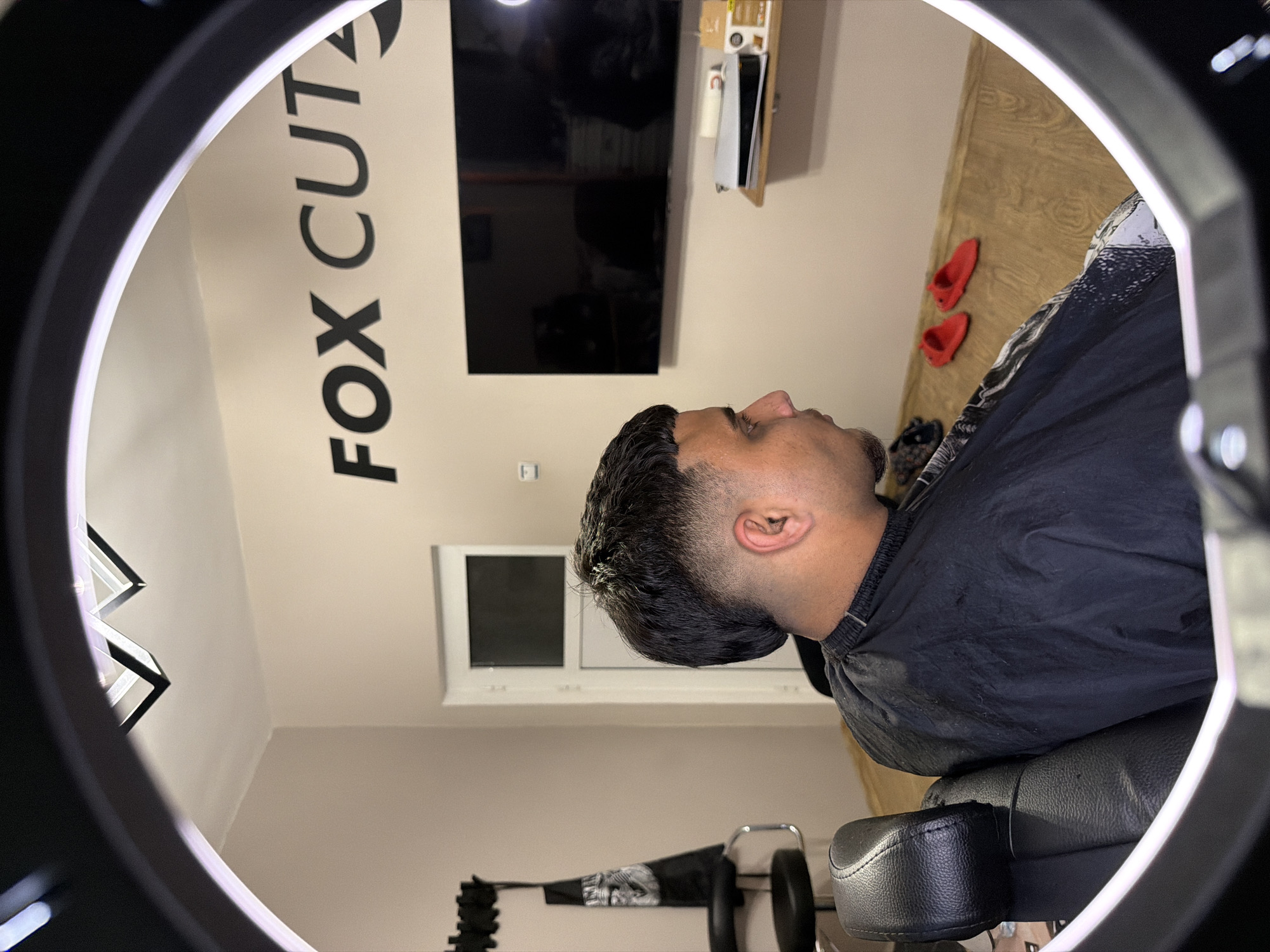 - "A medium shot of a man getting a haircut in what appears to be a barbershop" by FM-dR5vm1, licensed under CC BY 4.0