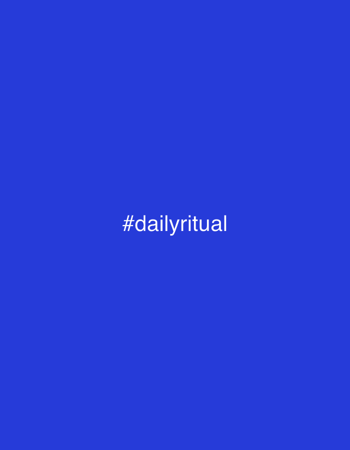 The scene, situated in Marseille, France, displays a solid, uniform blue field. Centered horizontally and vertically, white sans-serif text reads '#dailyritual'. No people, subjects, objects, actions, interactions, or discernible environmental elements are depicted within the image.