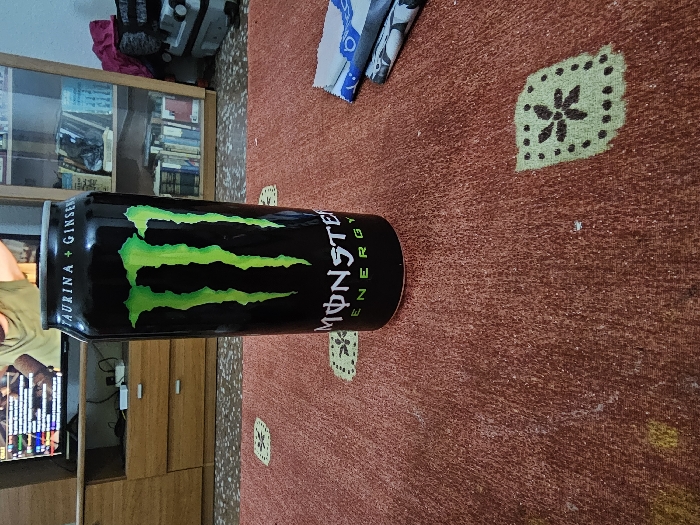 - "A can of Monster energy drink sits horizontally on a red-brown patterned rug" by FM-iSFiB3, licensed under CC BY 4.0