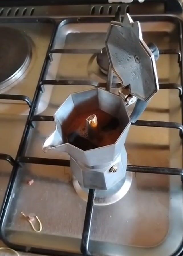 - "moka pot brewing coffee on a stovetop" by FM-EjnL92, licensed under CC BY 4.0