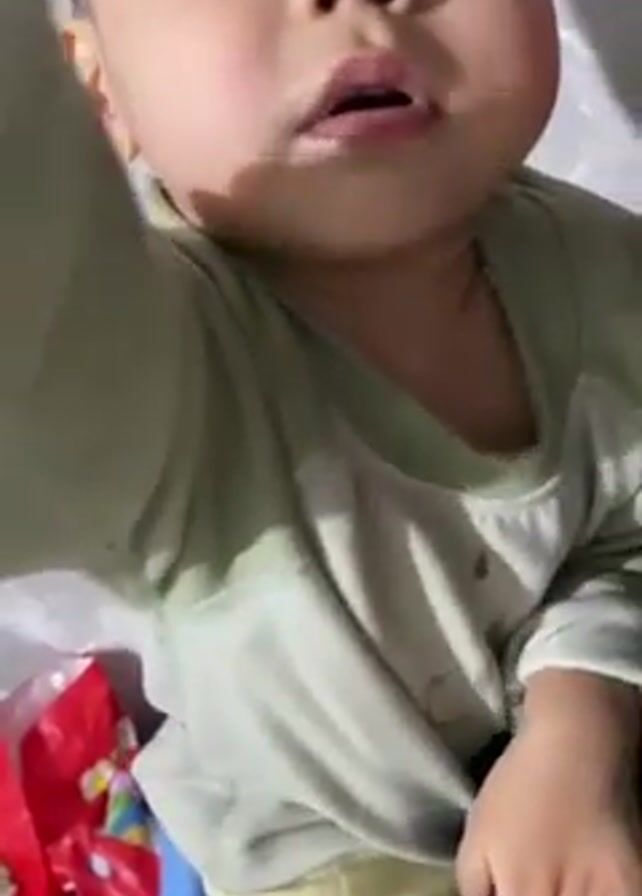 A toddler is shown up close in a video