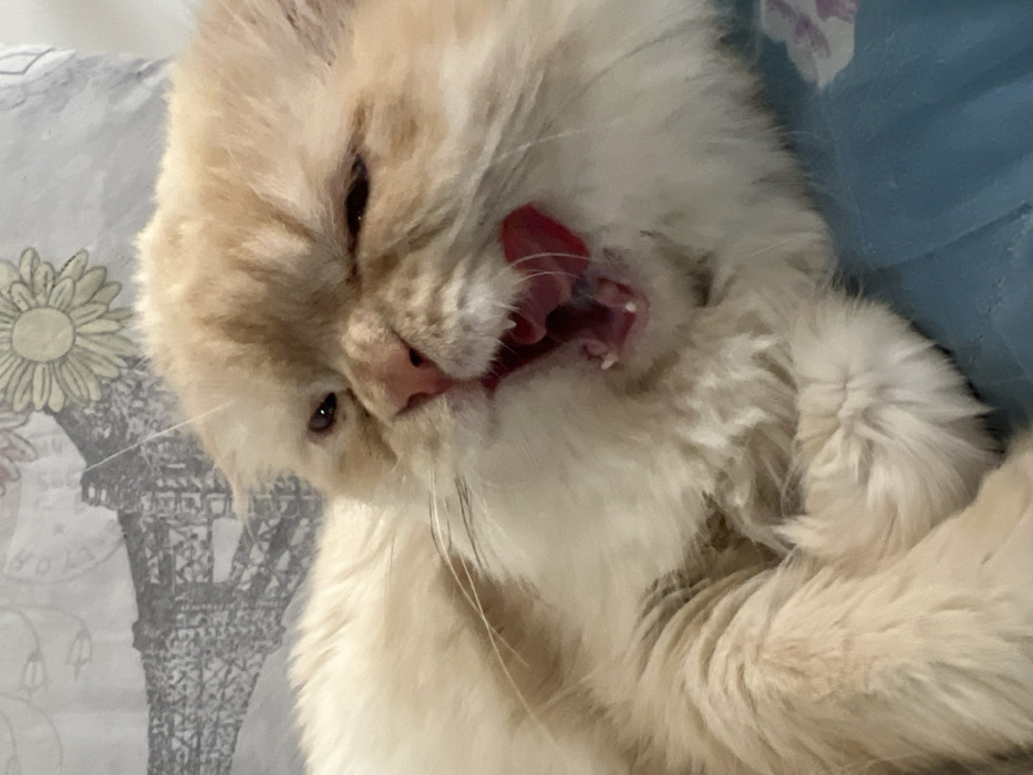 - "The image displays a cream and light orange long-haired feline, likely a cat, in an indoor setting within Navoiy City, Uzbekistan" by FM-RkAm93, licensed under CC BY 4.0