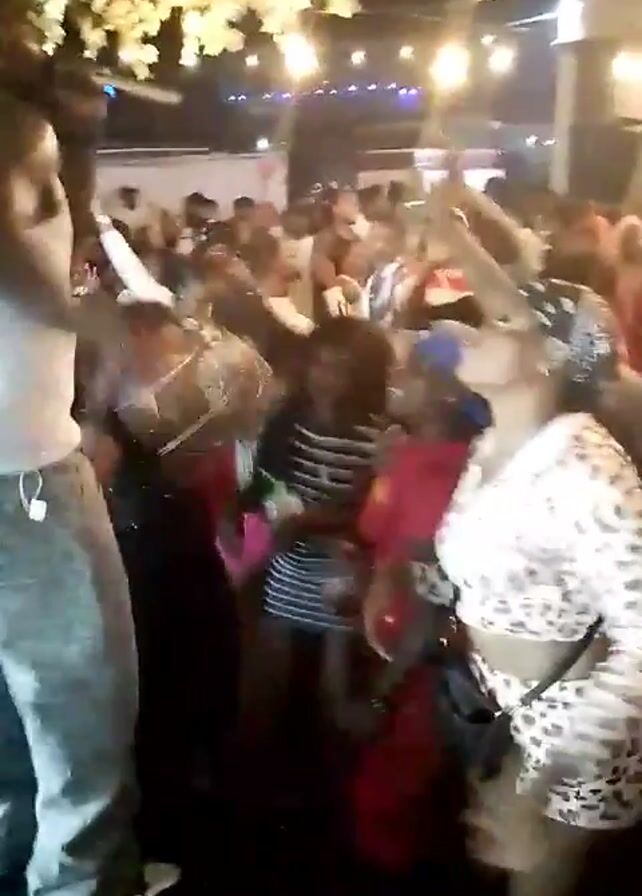 A video captures a lively outdoor gathering at night, with many people dancing to music