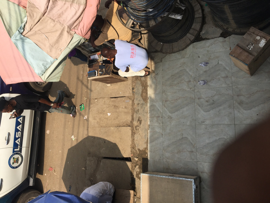 - "An overhead, high-angle image captures an outdoor urban commercial street scene in Ojo, Lagos State, Nigeria, illuminated by strong sunlight casting sharp shadows" by FM-BRj2B3, licensed under CC BY 4.0