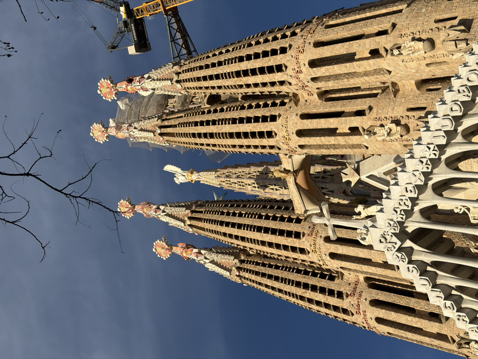 - "The image depicts the towering spires of the Sagrada Familia in Barcelona, angled upwards against a bright blue sky" by FM-7gWCF3, licensed under CC BY 4.0