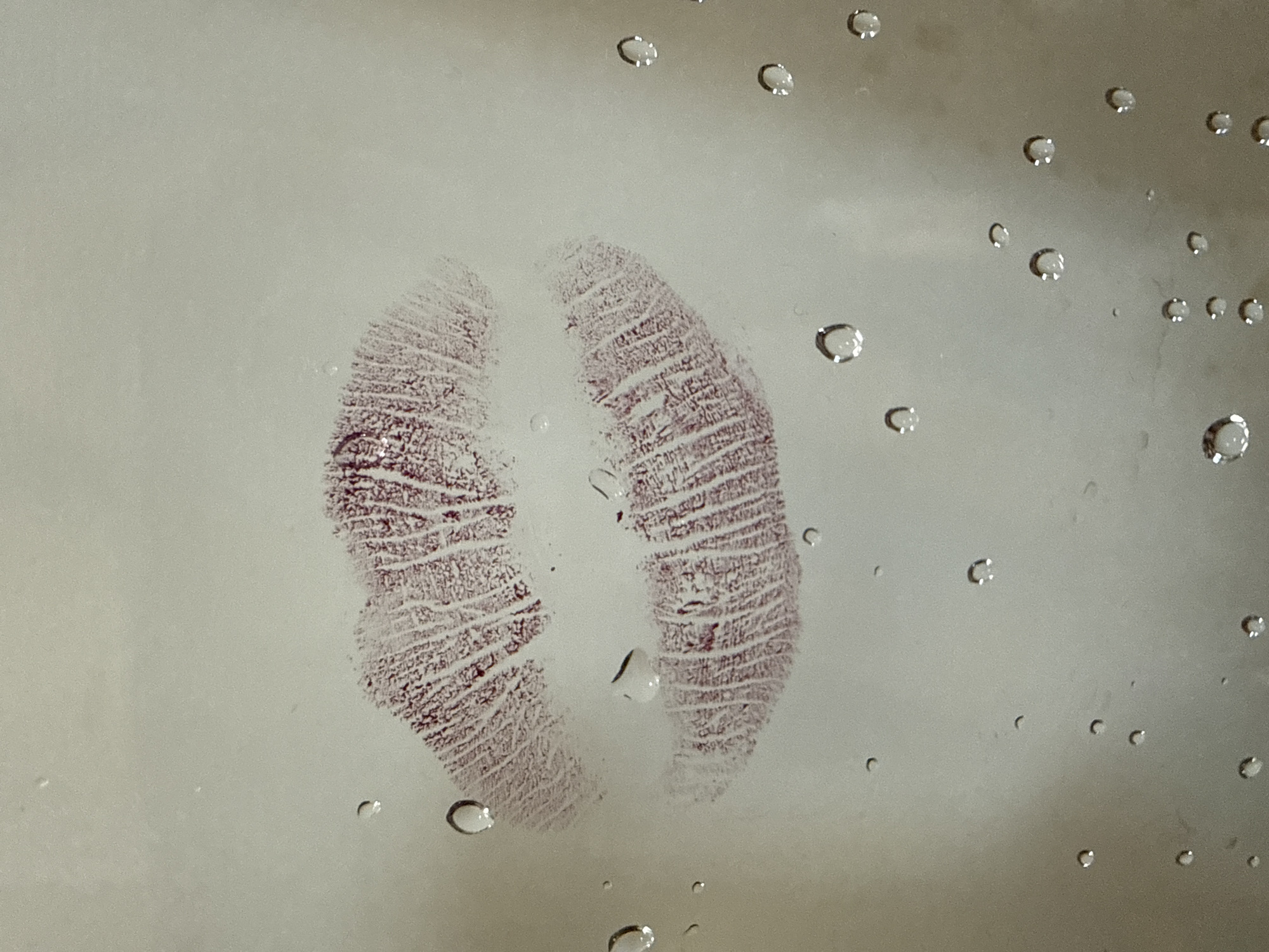 - "A close-up shot depicts a lipstick kiss print on a glossy, light-colored surface, possibly glass or smooth tile" by FM-hPg8L2, licensed under CC BY 4.0
