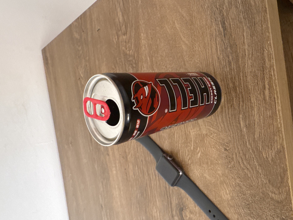 - "Located in Chernogorovo, Bulgaria, the scene depicts a partially consumed 'HELL ENERGY DRINK CLASSIC' can and a dark grey Apple Watch resting on a light brown wooden surface" by FM-bRsT02, licensed under CC BY 4.0