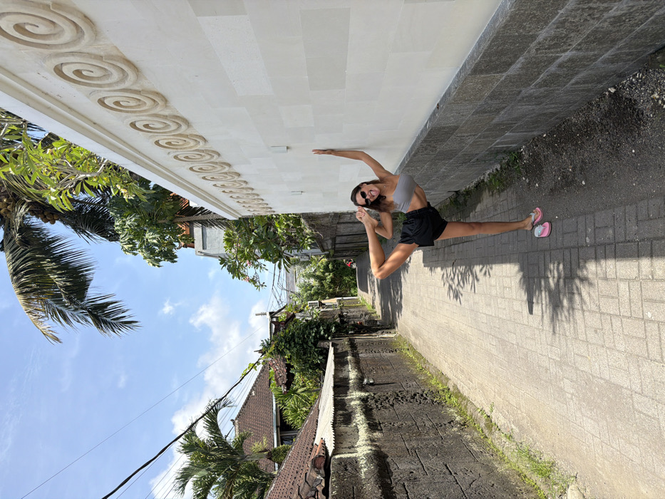 - "A woman in a gray top and black shorts does a split between two walls on a paved street" by FM-JxfQU2, licensed under CC BY 4.0
