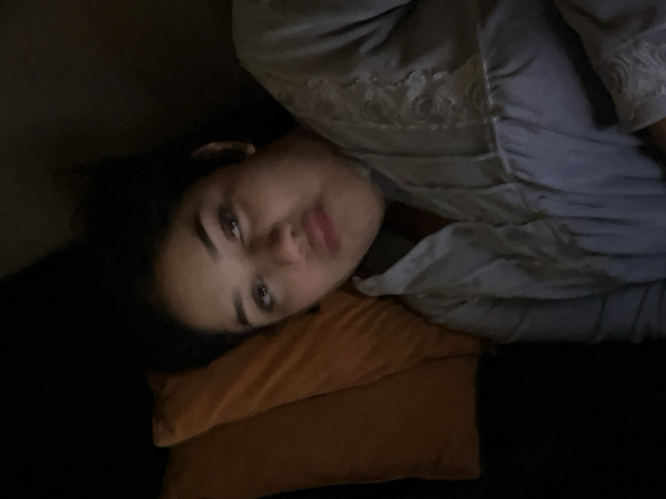 - "A woman rests on an orange pillow against a dark background" by FM-PwtkB2, licensed under CC BY 4.0
