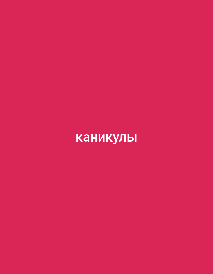 The image displays a solid, uniform magenta background (hex #EE2A6F). Centered both horizontally and vertically on this background is the word "каникулы" rendered in white, sans-serif Cyrillic text. The word translates to "holidays" or "vacation" in English. No people, objects other than the text and background, actions, or interactions are depicted. The environment is abstract, consisting solely of a colored field and text. There are no visual cues within the image content to indicate a specific geographic location in the city of Красный Маяк, Russia, or any other real-world setting.