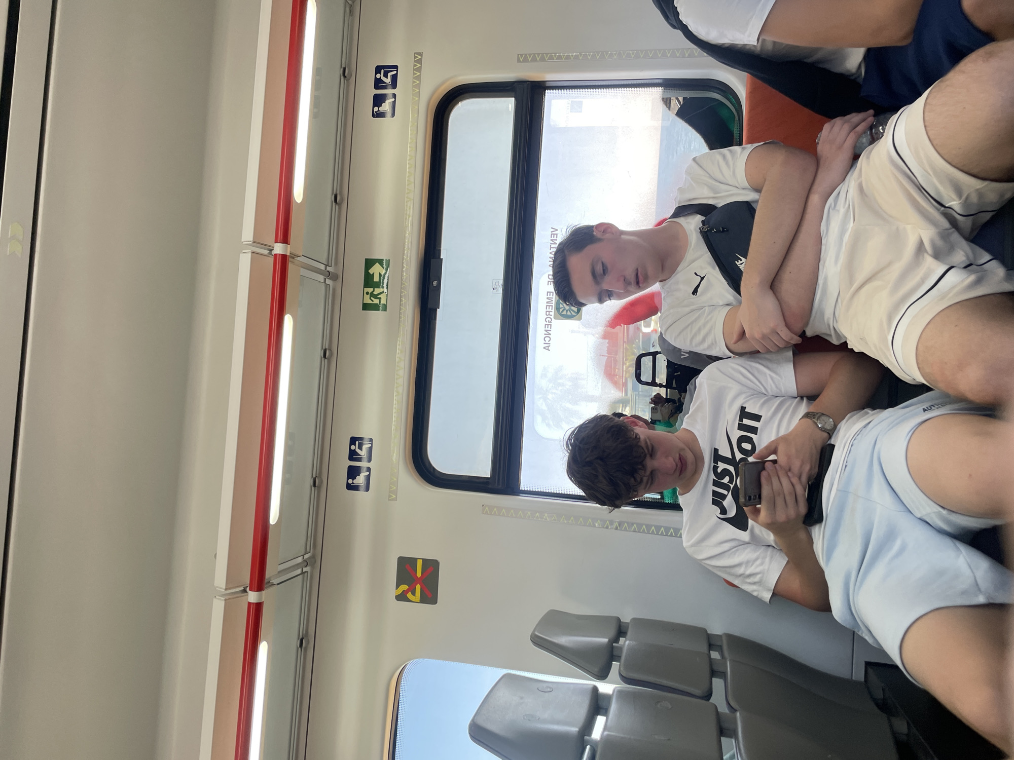 Onboard a train in Mataró, Spain, two young men are seated