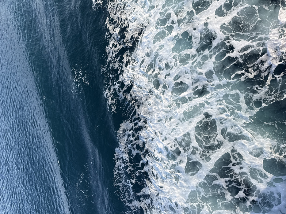 - "The image provides a detailed, downward-looking perspective of dark blue seawater, illustrating the wake created by a moving vessel" by FM-GvERo2, licensed under CC BY 4.0