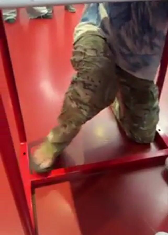 - "man in camouflage pants adjusting a red table or bench" by FM-6wrKn1, licensed under CC BY 4.0