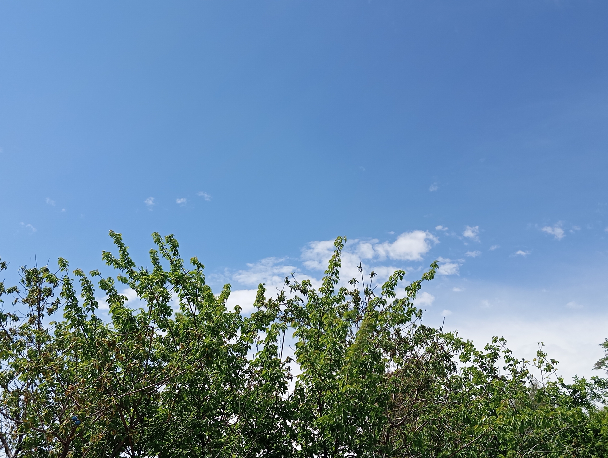 - "view of trees with green leaves against a blue sky with scattered white clouds" by FM-aOgcn1, licensed under CC BY 4.0