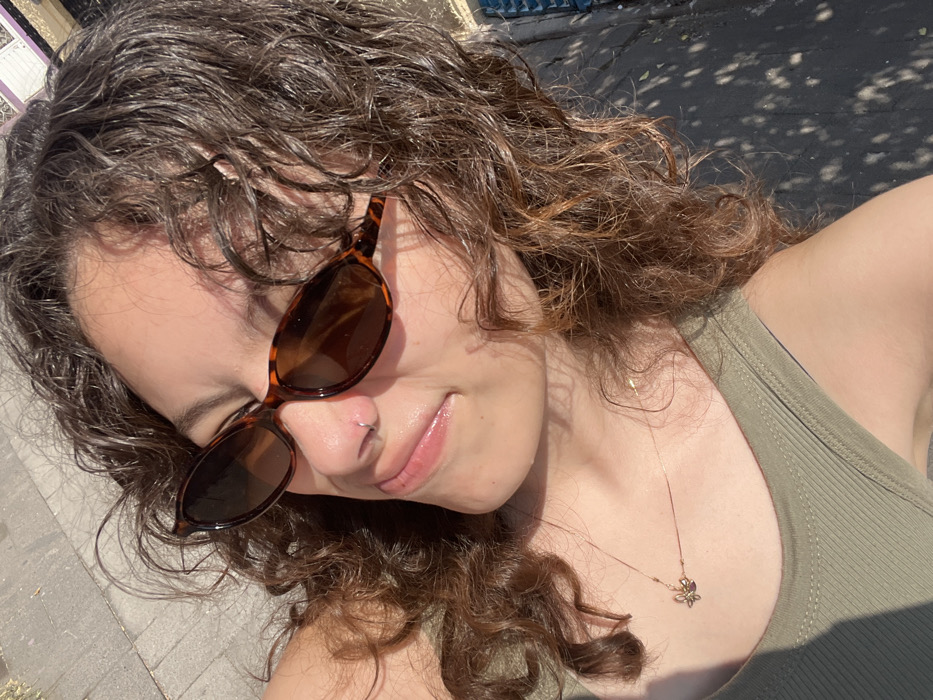 - "A woman with curly brown hair and sunglasses leans into the camera" by FM-uHQrE3, licensed under CC BY 4.0
