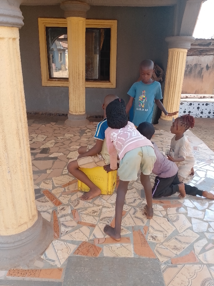 - "The scene depicts five children gathered on a tiled patio or veranda in Ejule, Nigeria" by FM-TKrYD3, licensed under CC BY 4.0