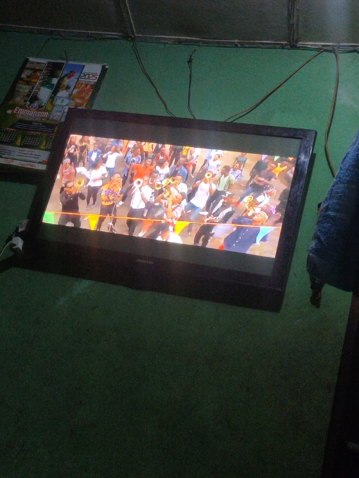 - "A Samsung TV displays a lively scene of people and musicians with trumpets and tubas" by FM-YUX1g1, licensed under CC BY 4.0