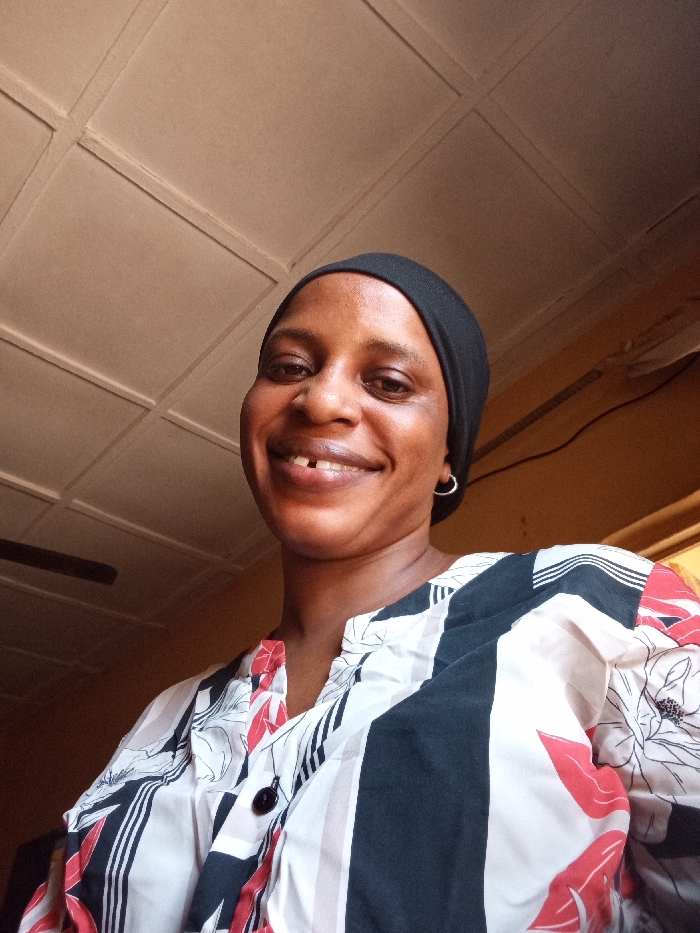 The scene depicts an adult female in an indoor setting within Narayi, Nigeria