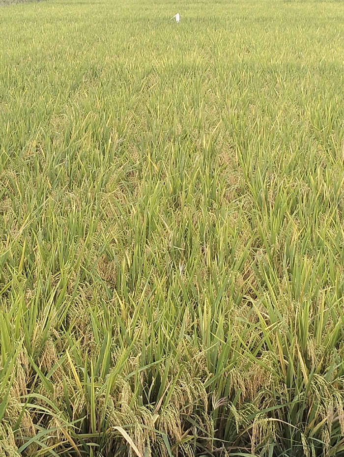 This image presents a vast agricultural rice field located in Lhokseumawe, Indonesia