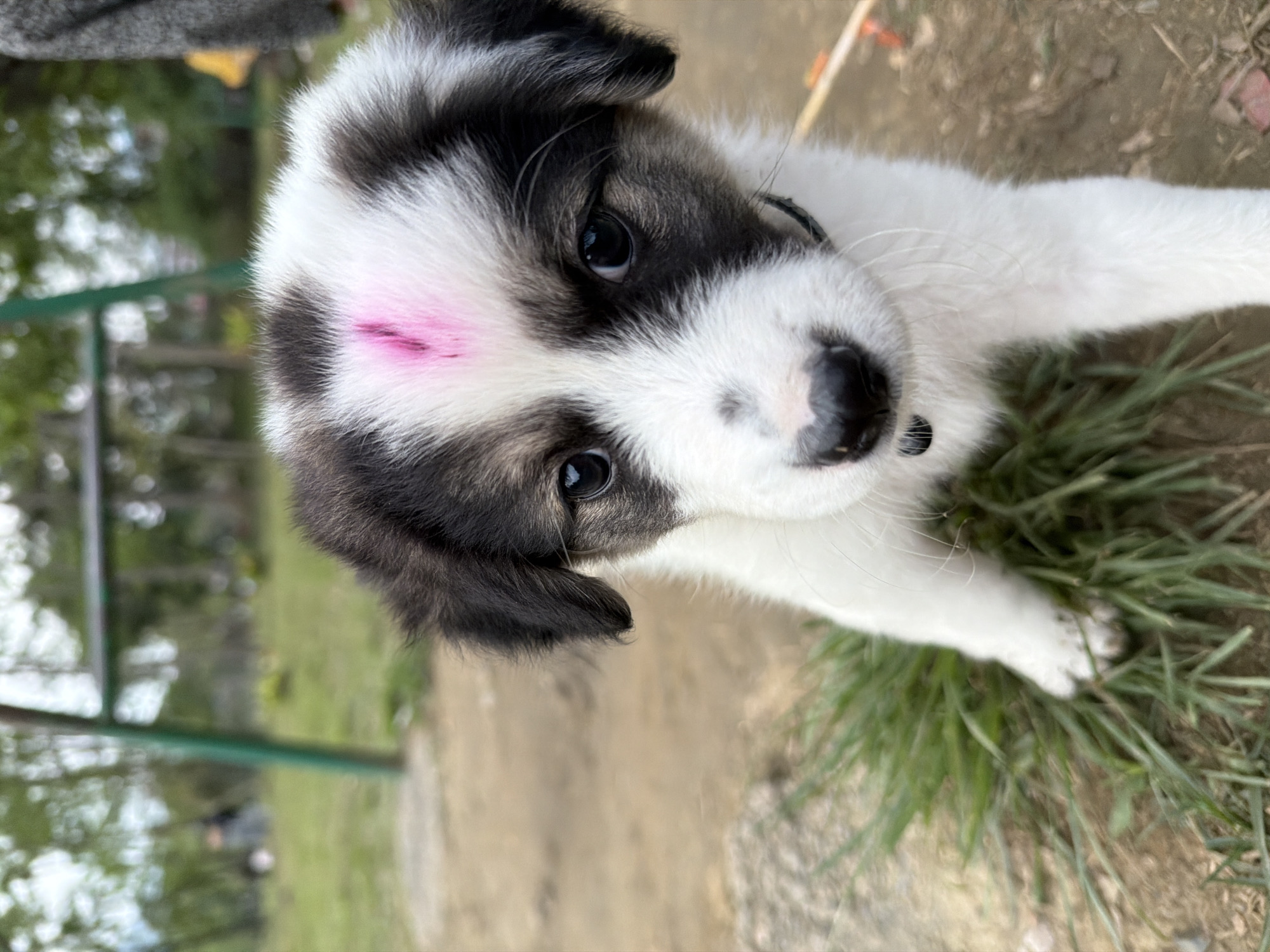- "A close-up, low-angle image captures a small, parti-colored puppy in an outdoor park setting in Pokhara, Nepal" by FM-7eA3G2, licensed under CC BY 4.0