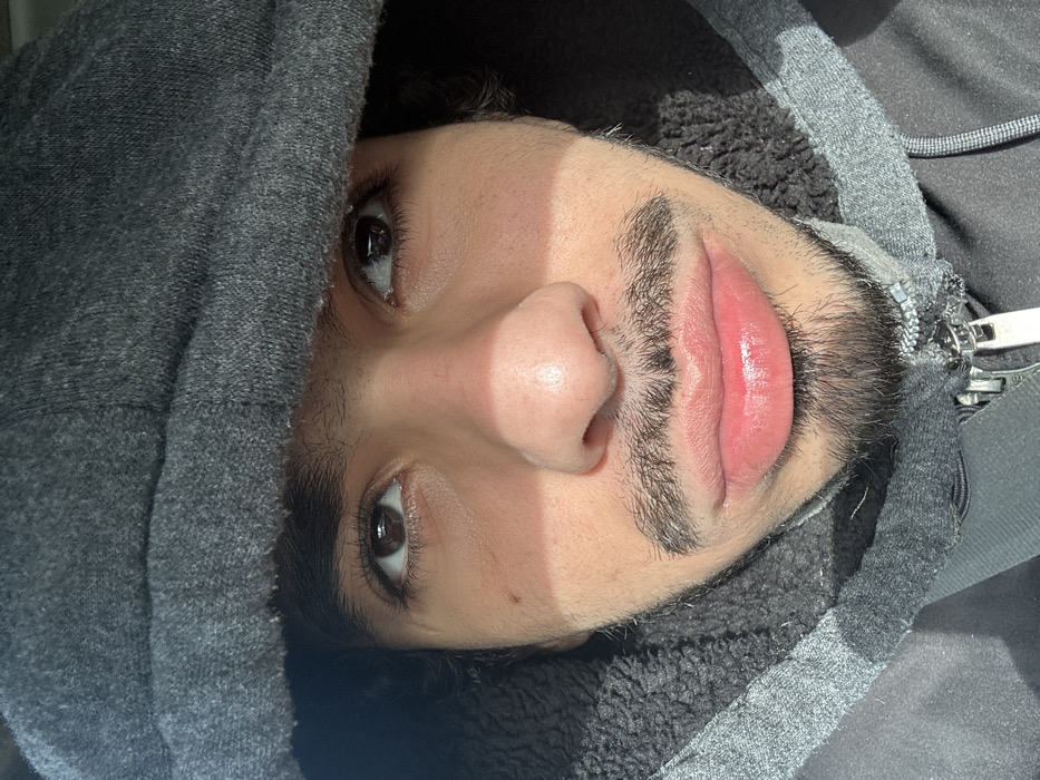 - "A frontal, close-up photograph depicts an individual, appearing male, wearing a dark grey hooded sweatshirt with the hood drawn over their head" by FM-iKko62, licensed under CC BY 4.0