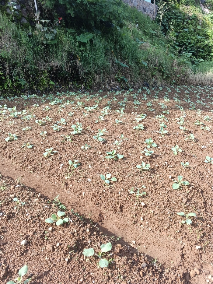 - "A vibrant vegetable garden with evenly spaced, small green plants growing in rich, reddish-brown soil" by FM-R92iB2, licensed under CC BY 4.0