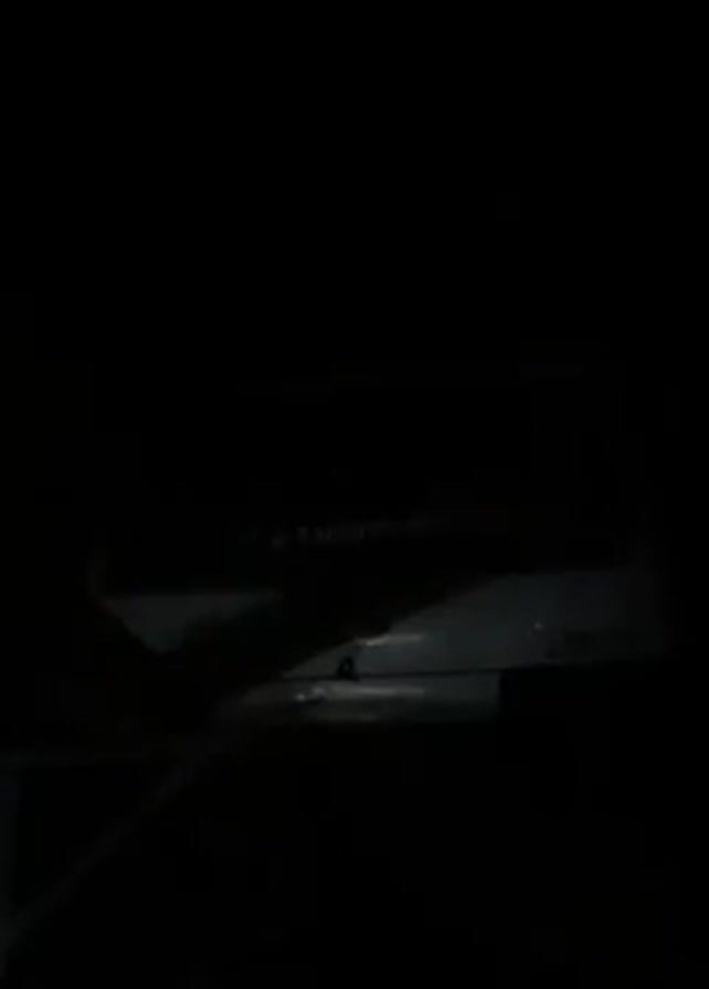 partially obscured, white vehicle in a dark setting. The vehicle has Hebrew writing on its back. The camera angle and lighting make it difficult to discern further details.