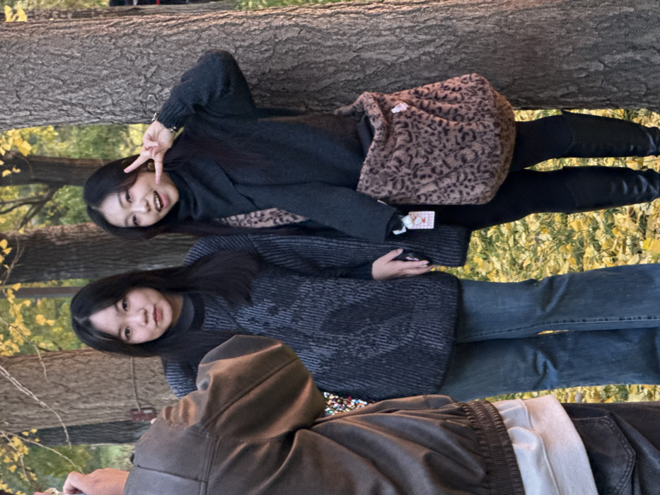 In Xicheng District, China, three individuals are captured in an outdoor autumnal setting