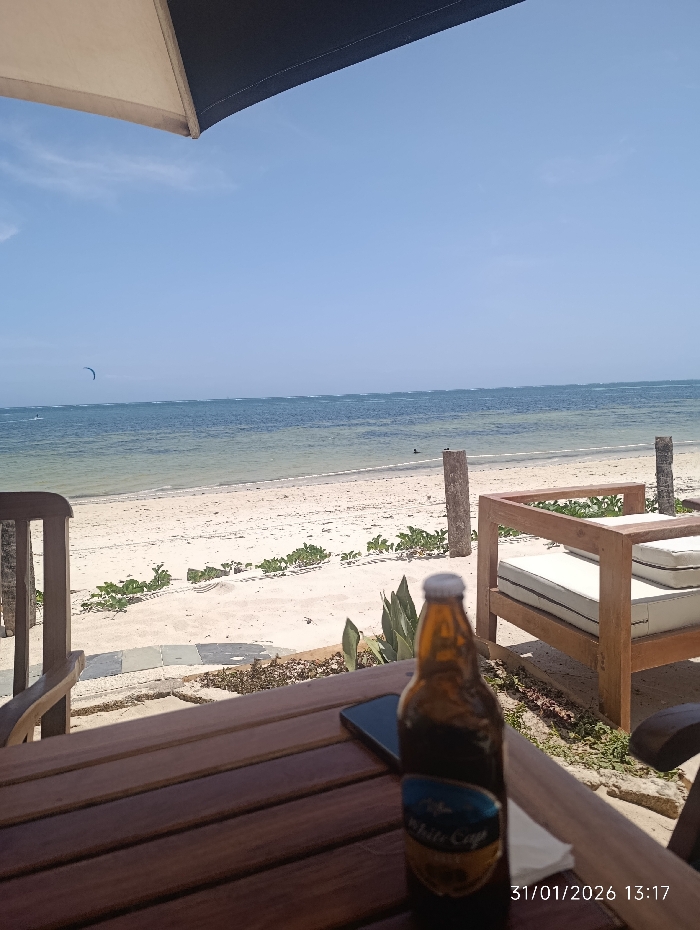 - "The image captures a beach scene from an elevated, shaded perspective, likely a patio or outdoor seating area, in Matungulu west ward, Kenya" by FM-R7nA43, licensed under CC BY 4.0