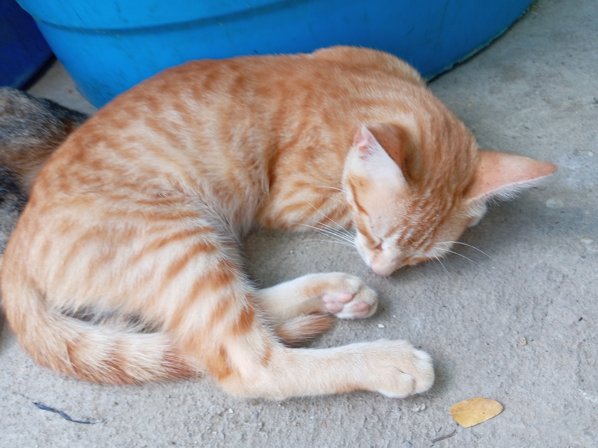- "An orange tabby cat is observed sleeping on a light gray concrete surface in Parroquia Ocumare, Venezuela" by FM-I9zNR2, licensed under CC BY 4.0