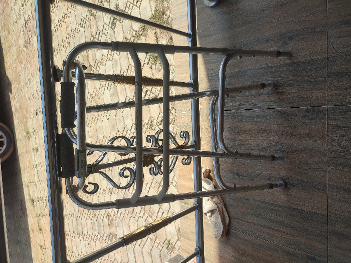 - "A silver-colored adult walker with black handgrips stands on a dark brown tiled floor with a wood grain pattern, located in Sabon Tasha, Nigeria" by FM-QTCIw1, licensed under CC BY 4.0