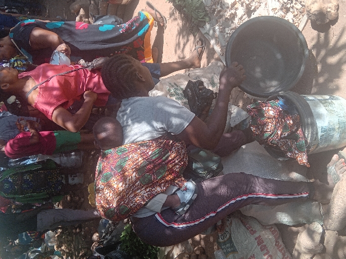 The scene depicts an outdoor market area in Gurku Gwari, Nigeria, under daylight conditions