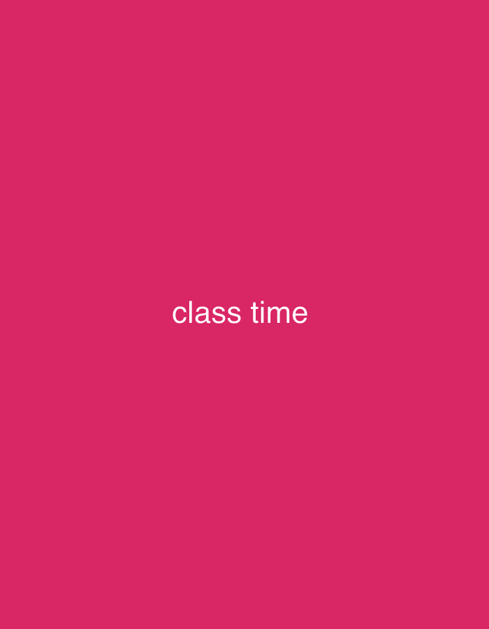 The image is a solid pink background with the words "class time" centered in white text. The pink color dominates the visual field. The font appears to be a simple, sans-serif typeface.