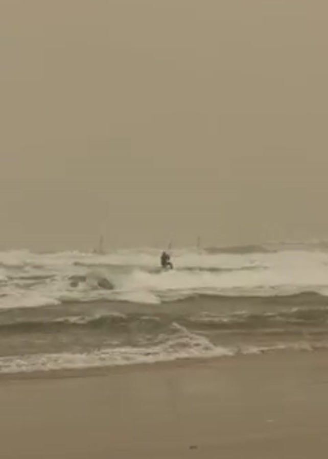 kitesurfer in action on a stormy beach