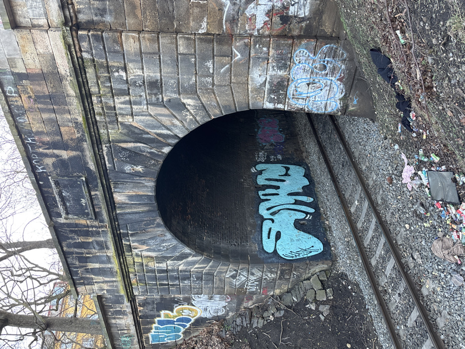 - "An exterior, ground-level photograph captures the entrance to a stone railway tunnel beneath a bridge in Prague, Czechia, specifically the railway bridge over the Botič stream in Albertov, near Vyšehrad" by FM-VURE53, licensed under CC BY 4.0