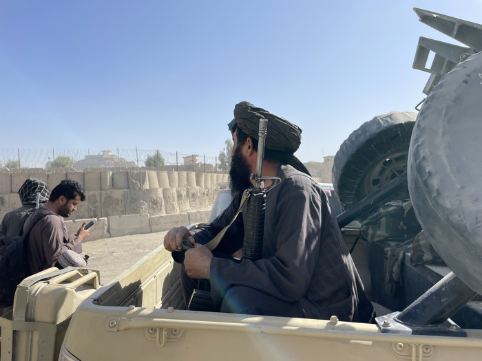 - "The image displays a daytime scene in Spin Boldak, Afghanistan, focusing on individuals in the rear bed of a light-colored utility or military-style pick-up truck" by FM-LYje72, licensed under CC BY 4.0