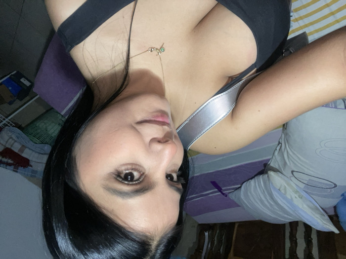 An image depicts a female individual taking a selfie indoors, likely in a bedroom, in the city of Unknown, Unknown