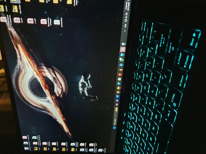 - "The image displays a black laptop computer positioned in a dimly lit indoor environment, viewed from an elevated angle" by FM-LJRLv2, licensed under CC BY 4.0