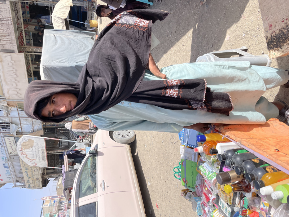 This image captures a street market scene in Spin Boldak, Afghanistan, under bright daylight