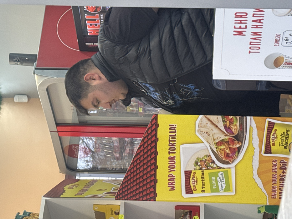 The scene is set inside a retail establishment in Stara Zagora, Bulgaria