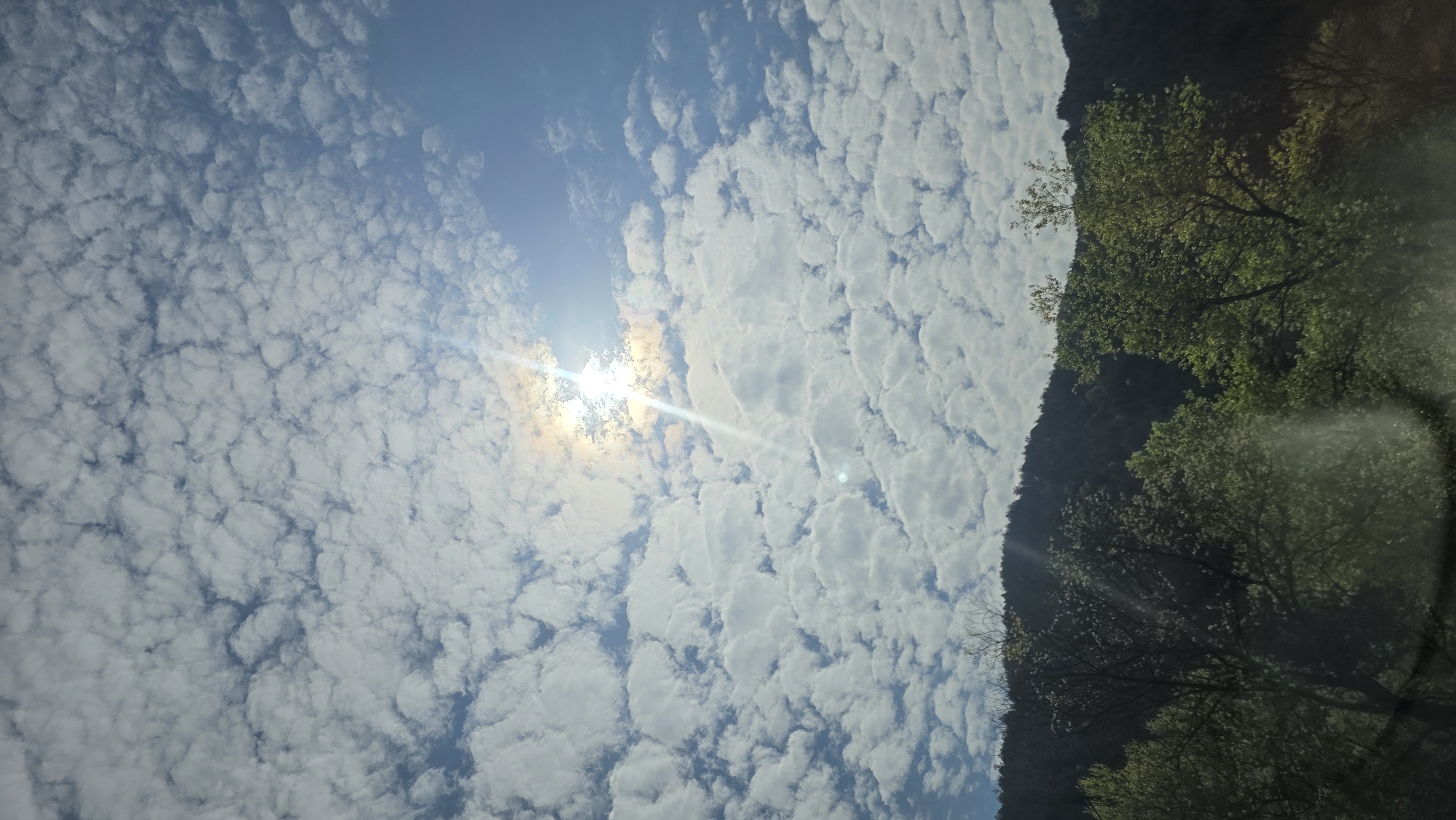 sky filled with small, puffy clouds under a bright sun