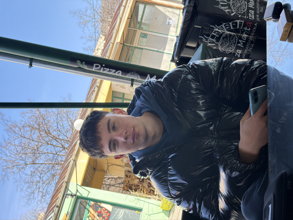 - "The image depicts a young male seated at an outdoor table, looking directly forward, against the backdrop of a pizzeria in Sofia, Bulgaria, on a clear day" by FM-ESoMI3, licensed under CC BY 4.0