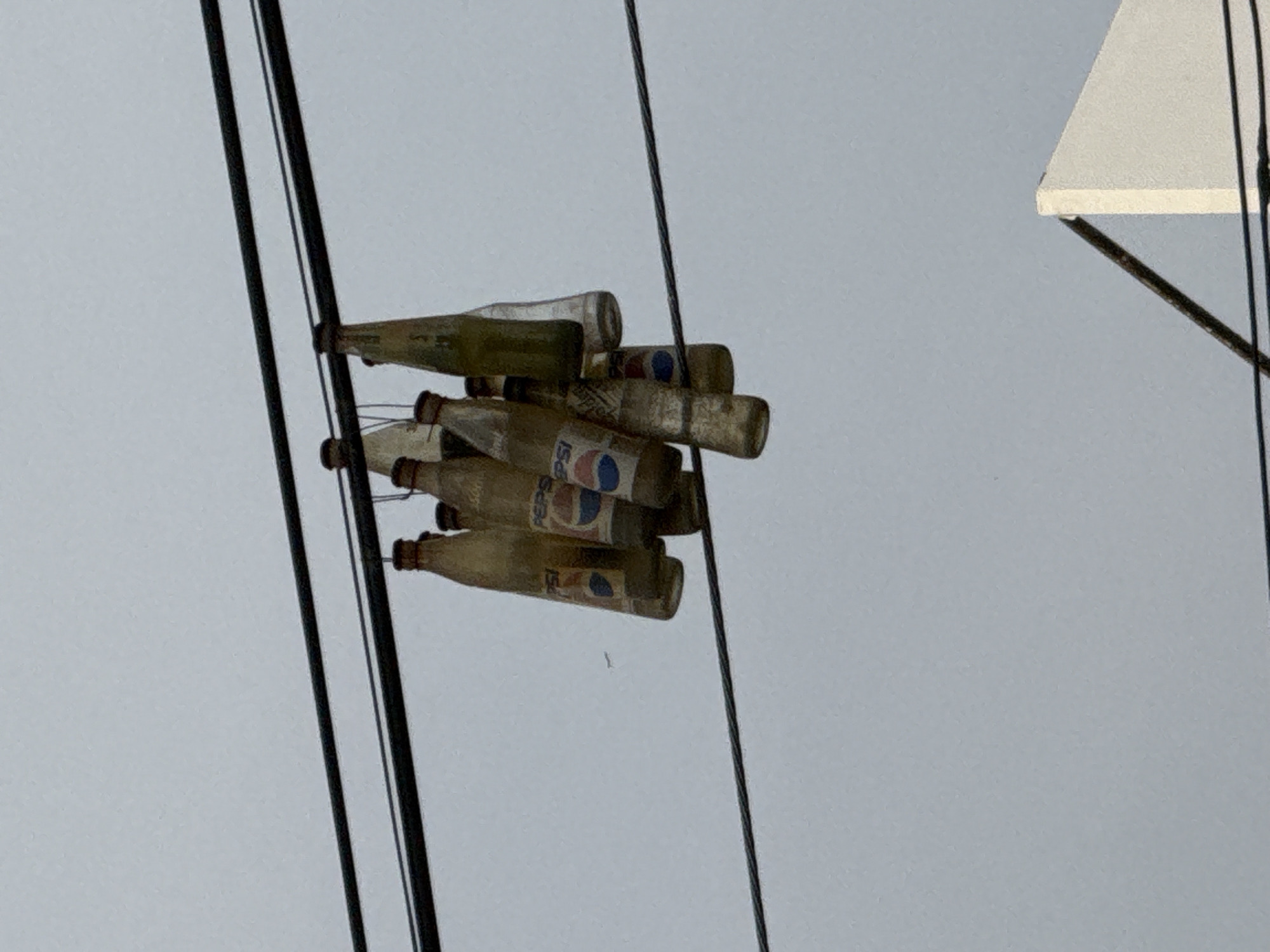 - "In Tinaquillo, Venezuela, a cluster of approximately ten empty glass Pepsi bottles hang from overhead power lines" by FM-FGAqu1, licensed under CC BY 4.0