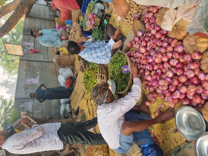 This image depicts an outdoor market scene in Enumulapalli, India