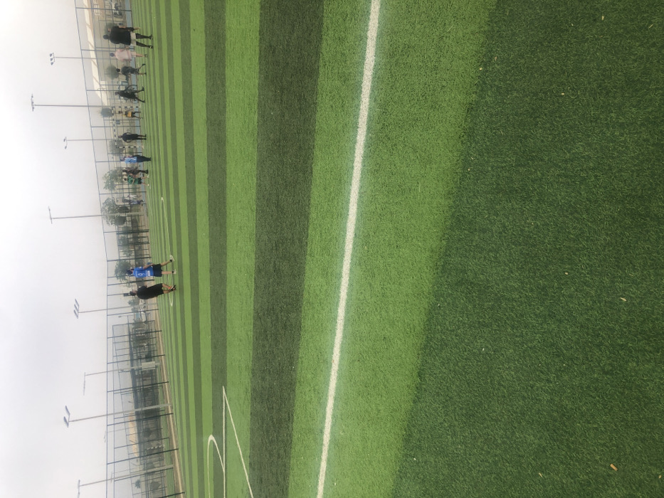 An outdoor artificial turf sports field, located in Hanak, Saudi Arabia, is visible under an overcast sky