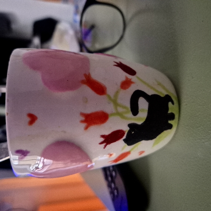 - "An indoor scene in Strasbourg, France, depicts a light-colored, possibly ceramic, mug positioned centrally on a uniform light green surface" by FM-DaNa73, licensed under CC BY 4.0