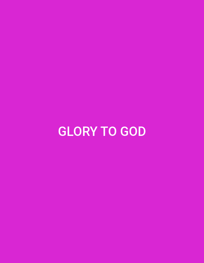 The image displays a solid magenta background. Centered horizontally and vertically in the frame is the phrase "GLORY TO GOD" rendered in white, uppercase, sans-serif text. There are no discernible people, subjects, objects, actions, interactions, or environmental features. The location in the city of Narayi, Nigeria, is not depicted or inferable from the image content.