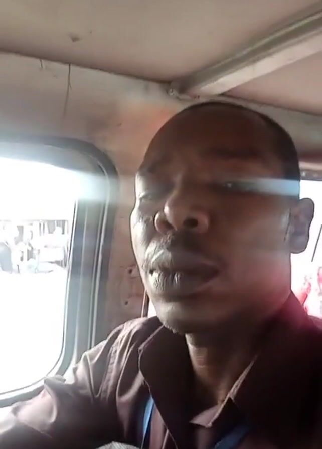 A man is recording a selfie video inside a moving vehicle